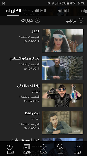 دراما كوميديا وثائقي تاريخي رومانسي خليجي سوري مصريرعب باب الحارة سيلفي الأسطورة الهيبة ذكريات لا تموت أنا شهيرة أنا الخائن حب بلا حدود.