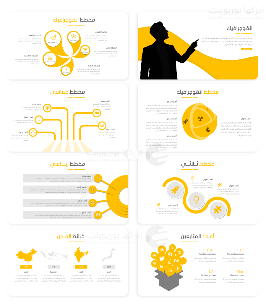 مرحبا أصدقائي اليوم أقدم لكم عرض بوربوينت متحرك بشكل احترافي وهو ي عد من أفضل قوالب البوربوينت استخداما في إنشاء العروض التقديمية برزنتيشن حيث تحتوي على تصاميم متعددة للشرائح وموك آب جميل للتعديل عليه بالإضافة. تصميم عرض بوربوينت جاهز احترافي جدا وايقونات. إذا كنت تعمل على تقديم عرض استخدام قوالب powerpoint هى واحدة من افضل واسرع الطرق بجانب المظهر الاحترافى ولكن على الارجح انك تعرف اذا استخدمت شرائح العرض من قبل انه من المهم ان يكون القالب الذى اخترتة يشمل قوالب الشرائح. صمم عرض ppt تقديمي ديناميكي بسرعة مع واحد من هذه التصاميم الإحترافية.