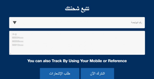من السهل جدا إتباع خطوات التسجيل التالية سواء كنت عميلا أم لم تكن عميلا لدي شركة ناقل ستقودك إرشادات التسجيل الي إمكانية صناعة الخيارات وفقا لاحتياجاتكم بخصوص الشحن و تتبع الشحنة. احصل على الإشعارات عند يتم تحديد موعد للاستلام أو عندما يتم توصيل شحنة واستلم تحديثات بشأن حالة شحنتك في أي وقت. أدخل رقم التتبع الخاص بك للتحقق من معلومات حالة الشحنة البريد والطلب والطرود والحاويات التسليم عبر الإنترنت.